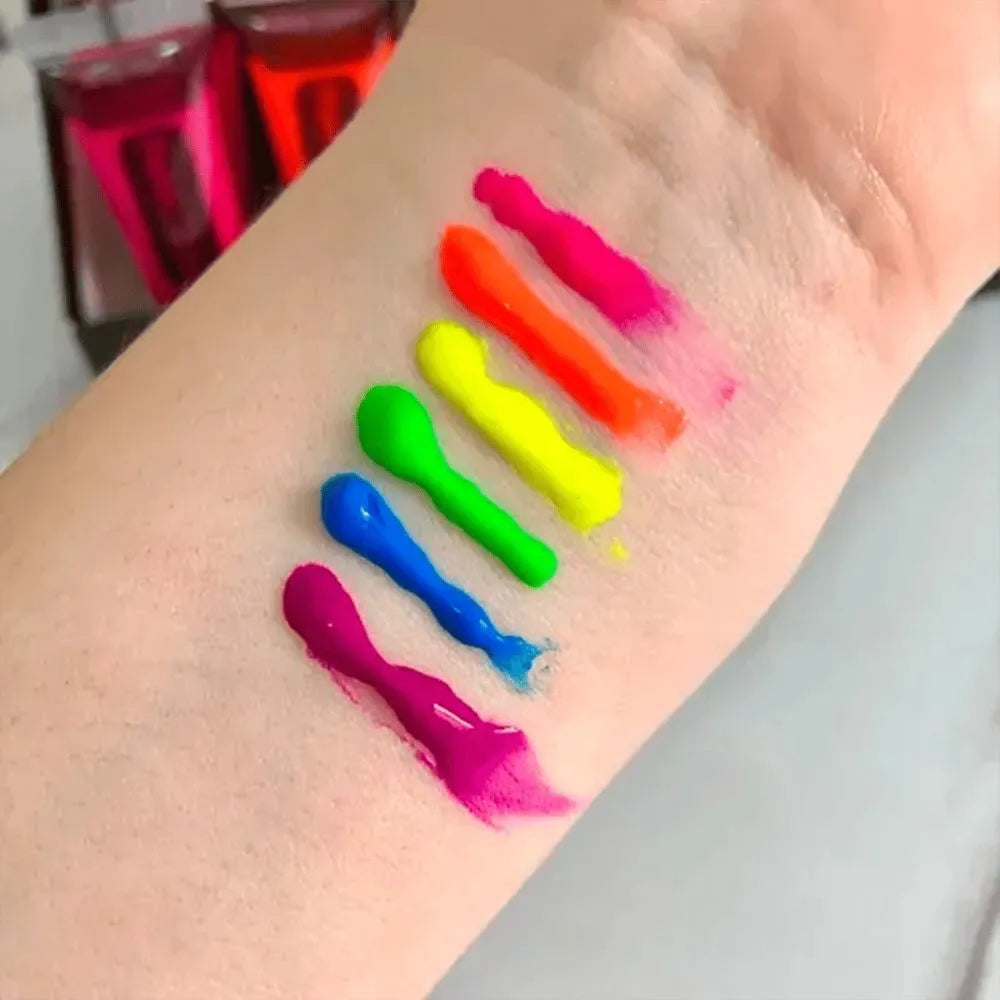 Luce un maquillaje fluorescente que enciende bajo la luz UV. Fácil de aplicar, rápido de secar y con colores que destacan en cualquier fiesta.