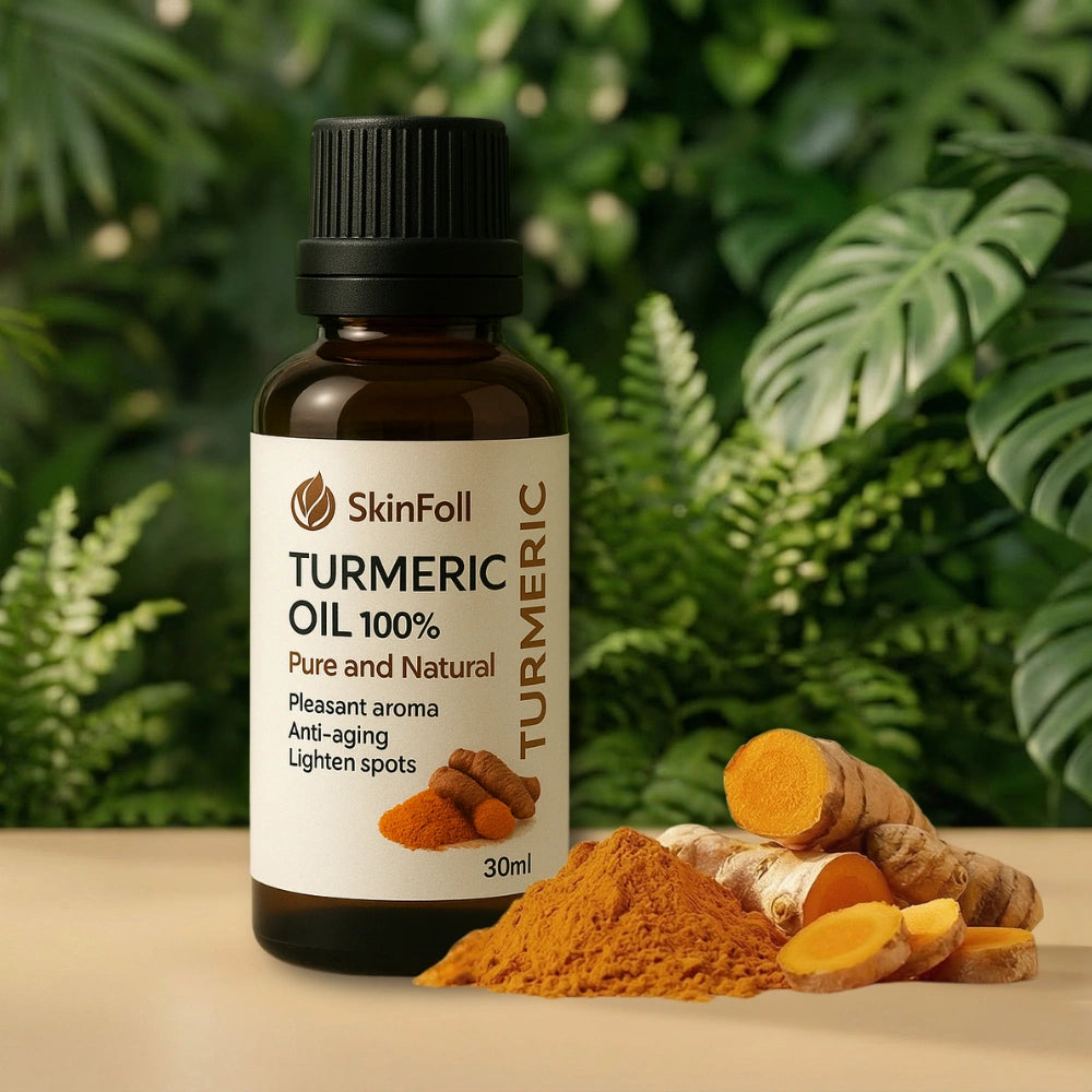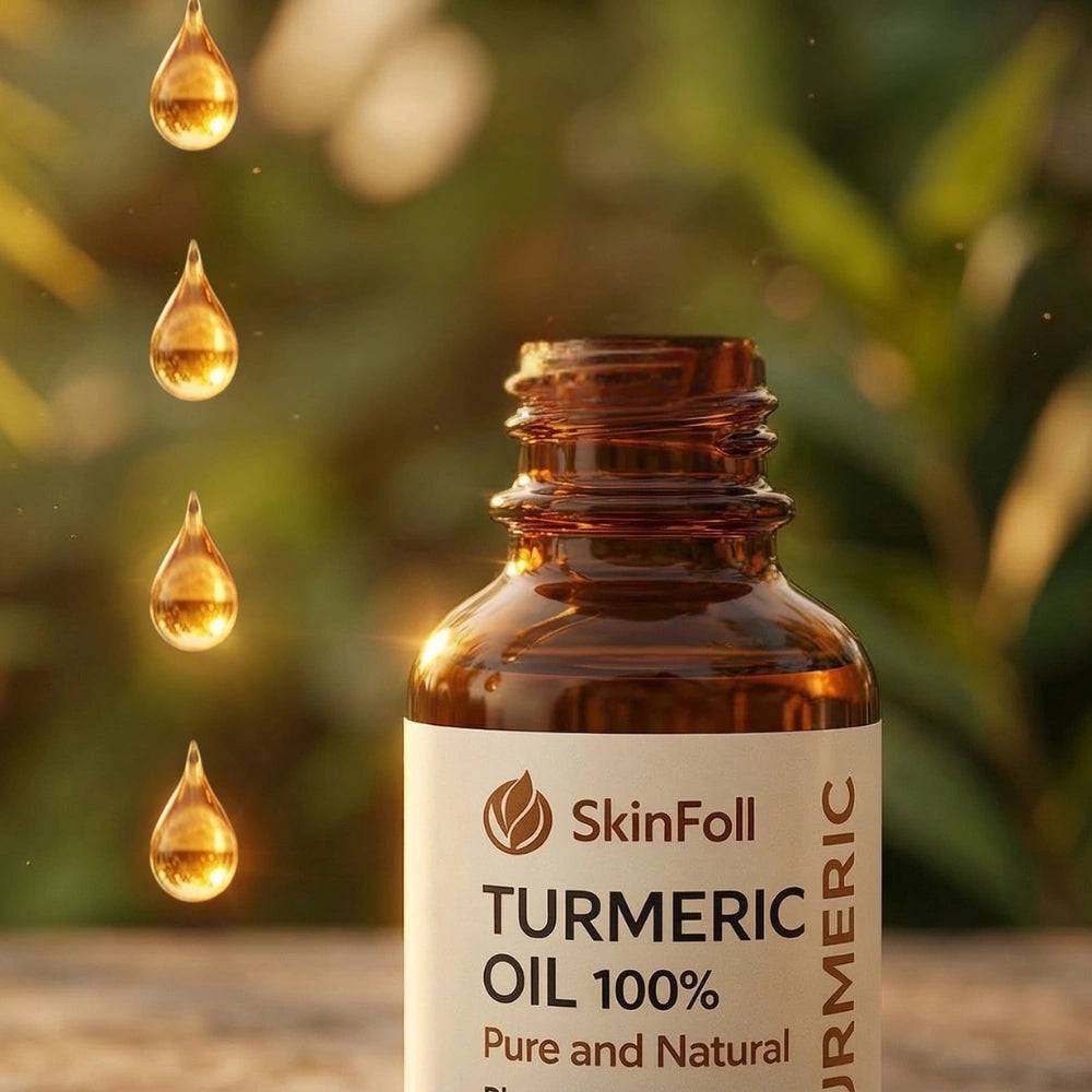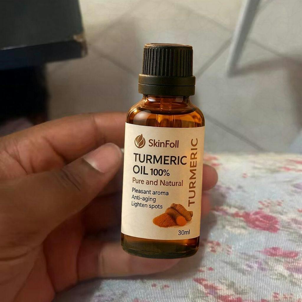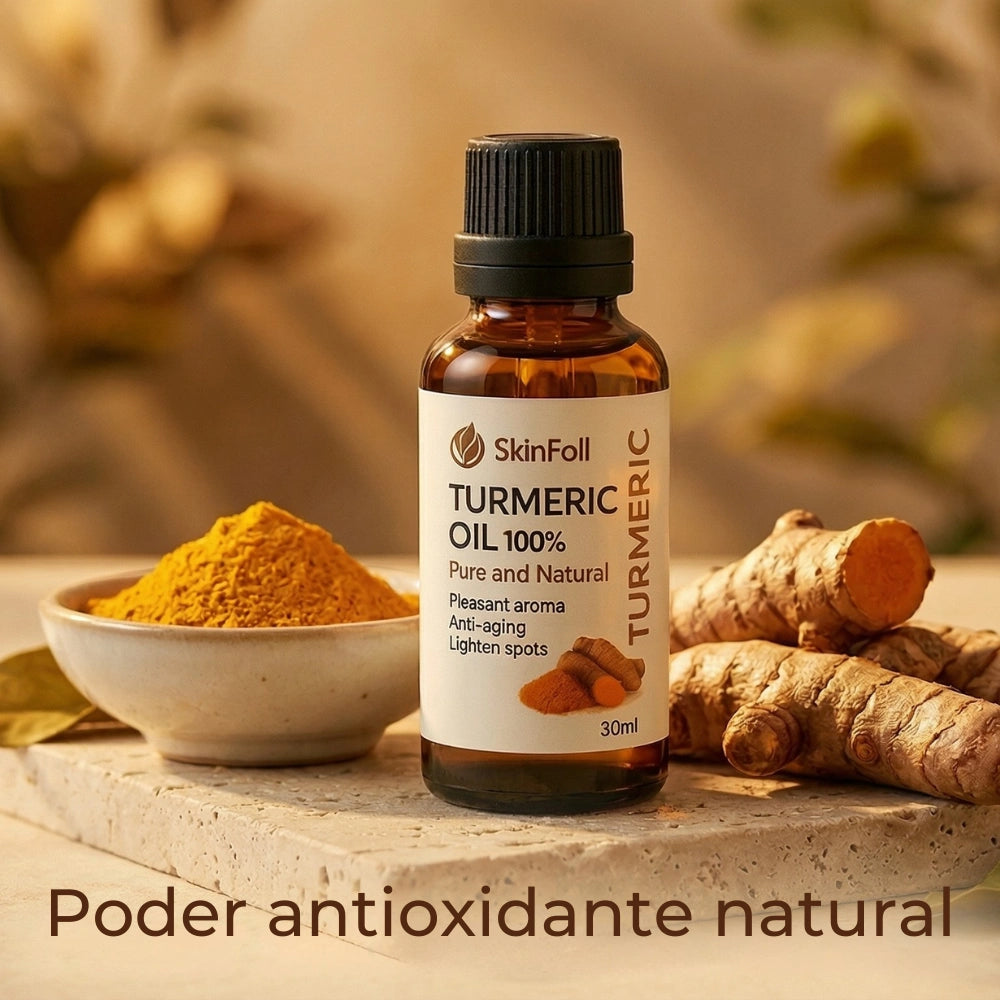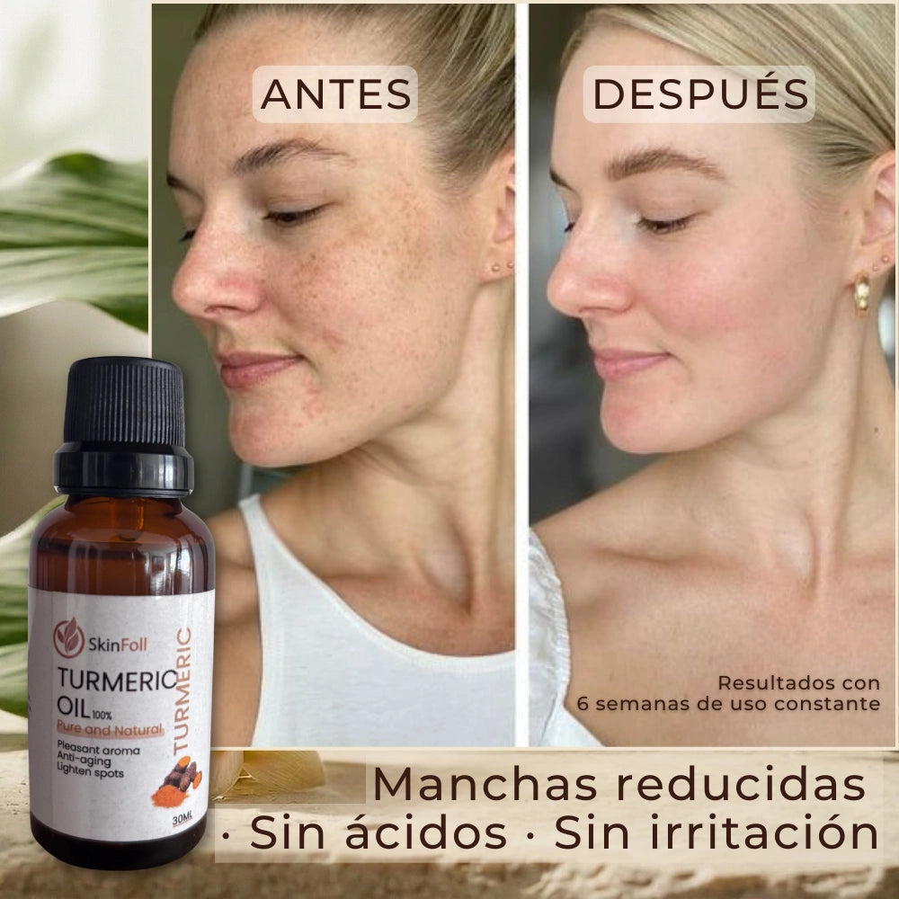 Aceite de cúrcuma 100% puro que ayuda a calmar la piel, mejorar el tono y reducir la apariencia de manchas — de forma progresiva y sin dañar la piel sensible.